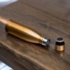 Duplafalú vákuumszigetelt ivópalack rozsdamentes acélból, szivárgásmentes zárással. Fekete és bronz színekben. Közelítő mérete ø 7 × 24,7 cm, űrtartalma 500 ml.