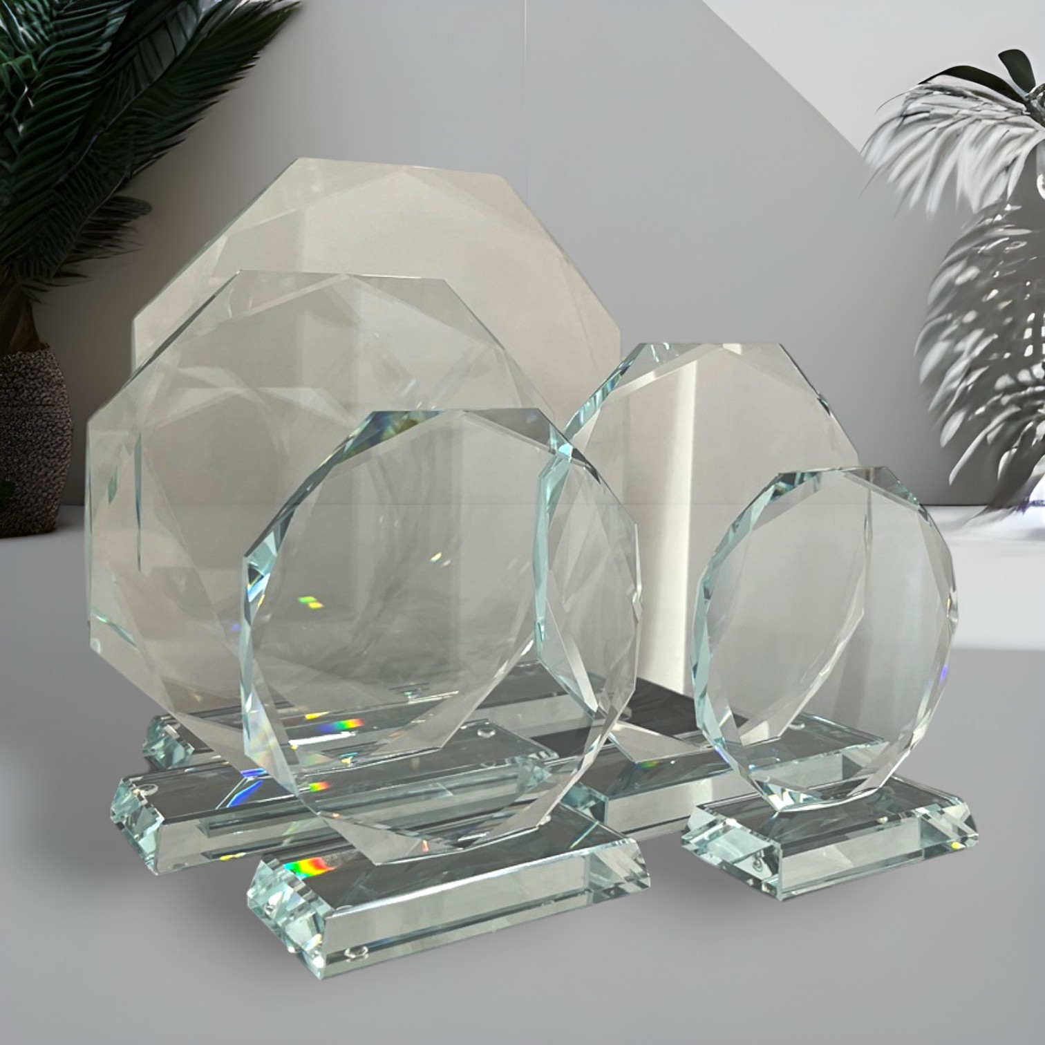 Kristály üvegplakett 11 cm (nyolcszög) egyedi gravírozott szöveggel vagy képpel