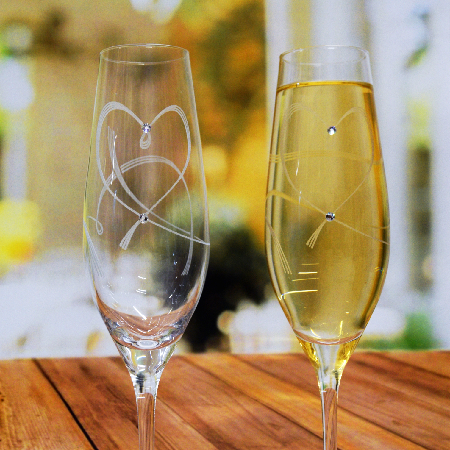 Pezsgős kristálypohár szett prémium kristályokkal, szív minta
