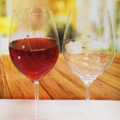 2 db-os borospohár szett vörösborhoz, letisztult mintával 3 – 3 db prémium kristállyal elegáns díszdobozban. Tisztítása csak kézzel javasolt. Űrtartalma: 2 x 247 ml. A pohár közelítő mérete 24 x 8,5 cm.